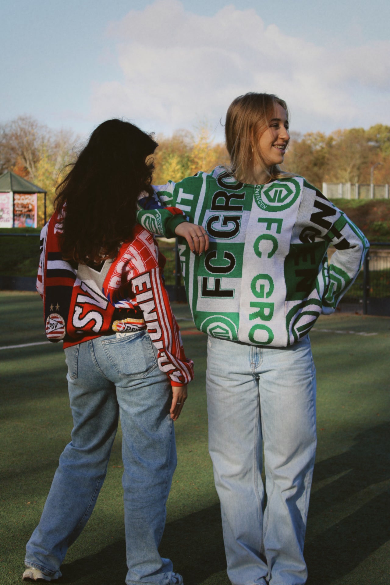 Made from reworked football scarves, each sweater carries real match-day history, reimagined with modern design and comfort in mind.